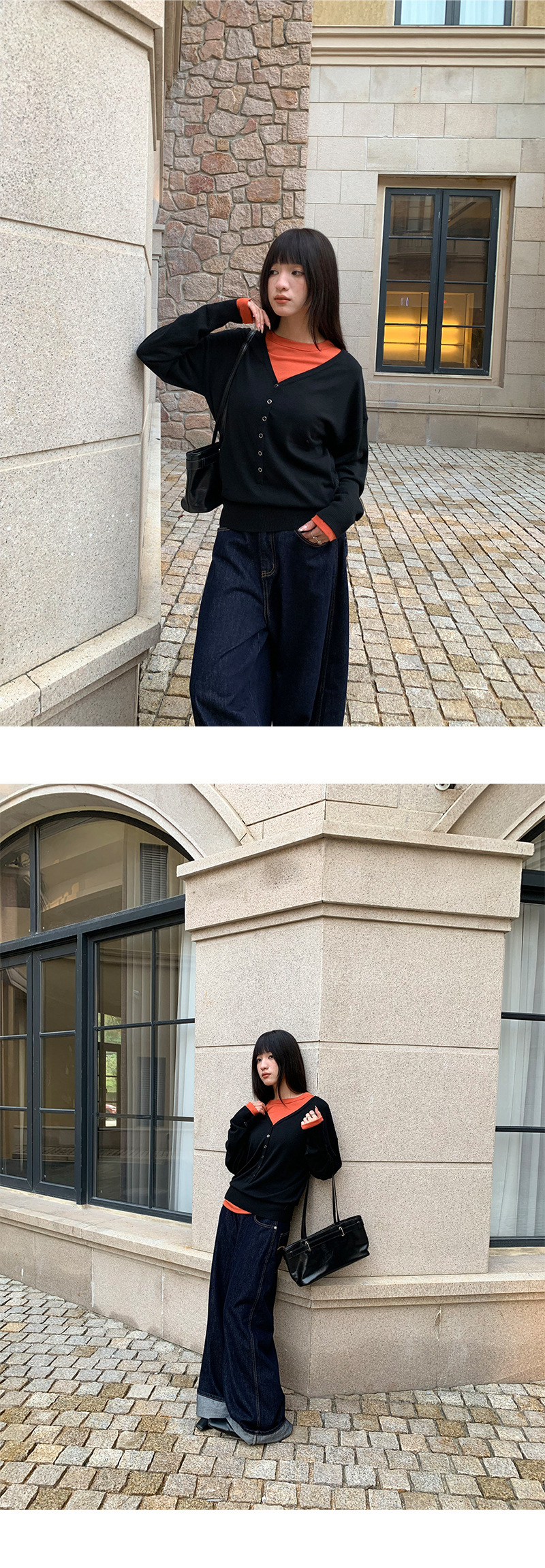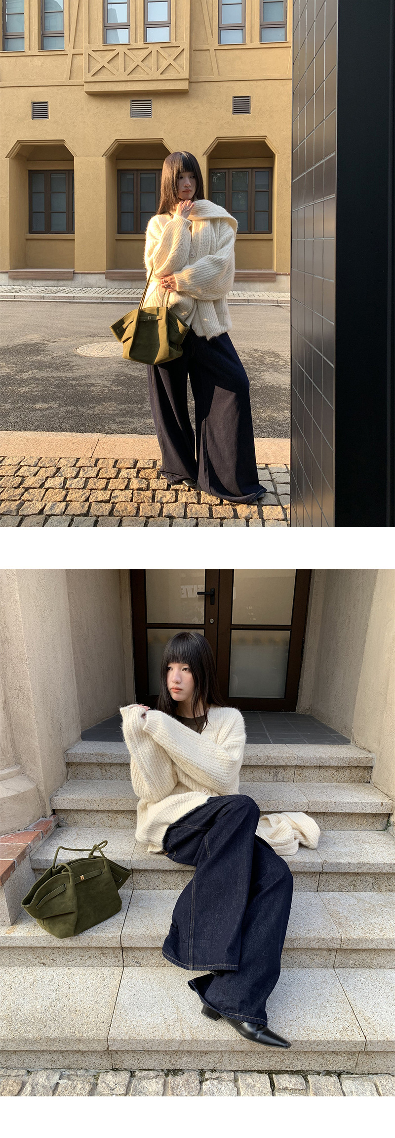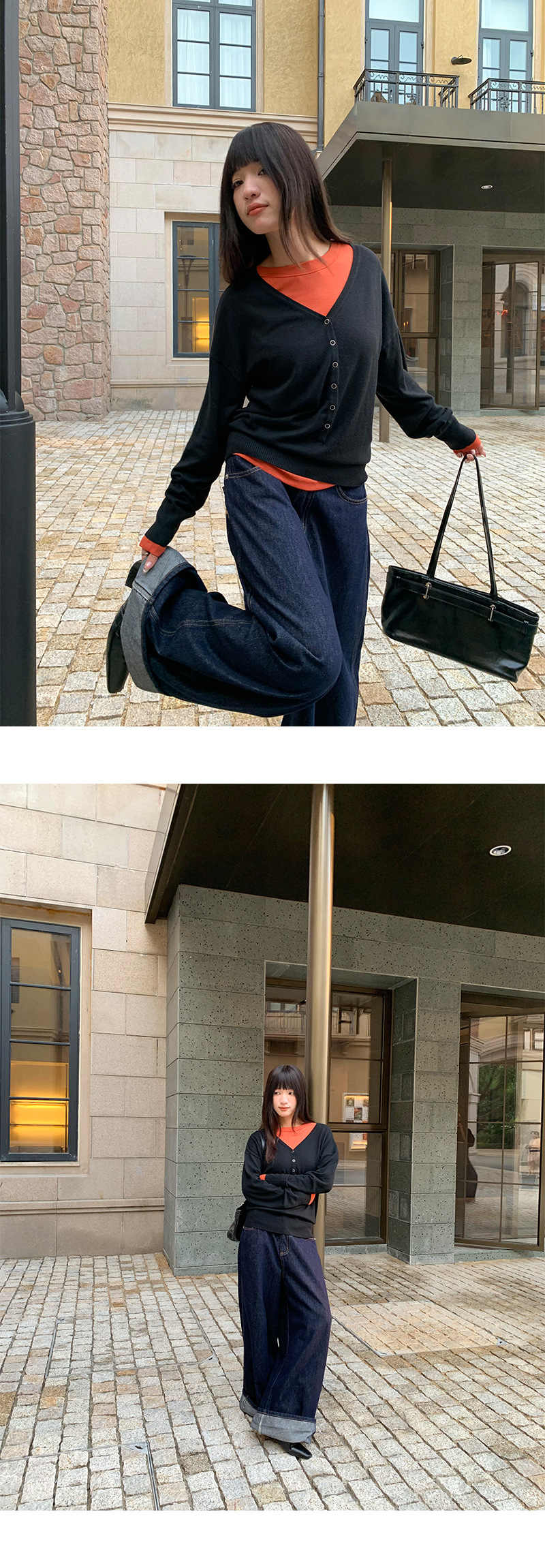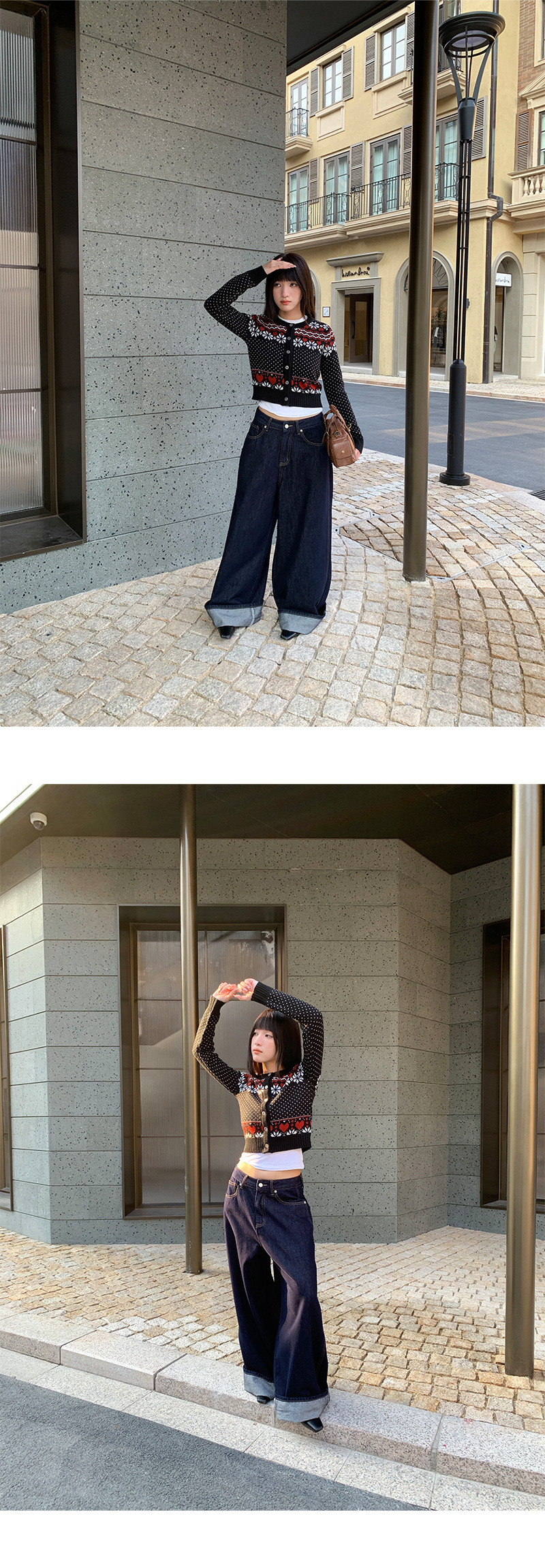 Korean-inspired design: Modern wide-leg jeans with decorative fake belt detailing for a stylish look.